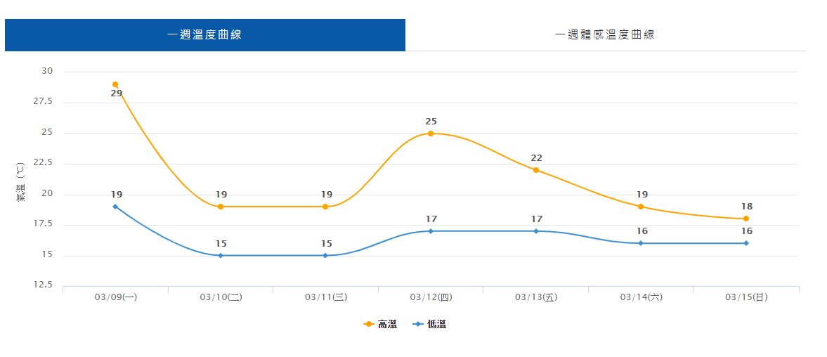 春天後母面!未來一周將迎2波東北季風。中央氣象局表示,周一(9)白天各地都是晴朗溫暖的好天氣,高溫都在27度以上,大台北及中南部地區可望飆破30度,不過好天氣並沒有持續太久,一周內天氣連3變,幾乎每2天就一變。