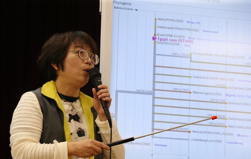 台灣第39例武漢肺炎(COVID-19)確診個案的病毒全基因體分析序列出爐,其病毒定序與台灣病毒定序差距很大,反而與歐洲、奈及利亞、巴西、義大利等地的病毒是同一個演化枝,證實第39案應是在埃及染病,並不是她將病毒帶到埃及。台大醫學院教授葉秀慧今天下午在中央流行疫情指揮中心記者會表示,台灣目前分析5名確診病人的病毒全基因體定序,台灣病毒主要有4個分枝,主要與中國武漢相關。案39的基因序列與此4分枝截然不同,是目前有分析的病毒序列中,唯一與歐洲有關的定序。