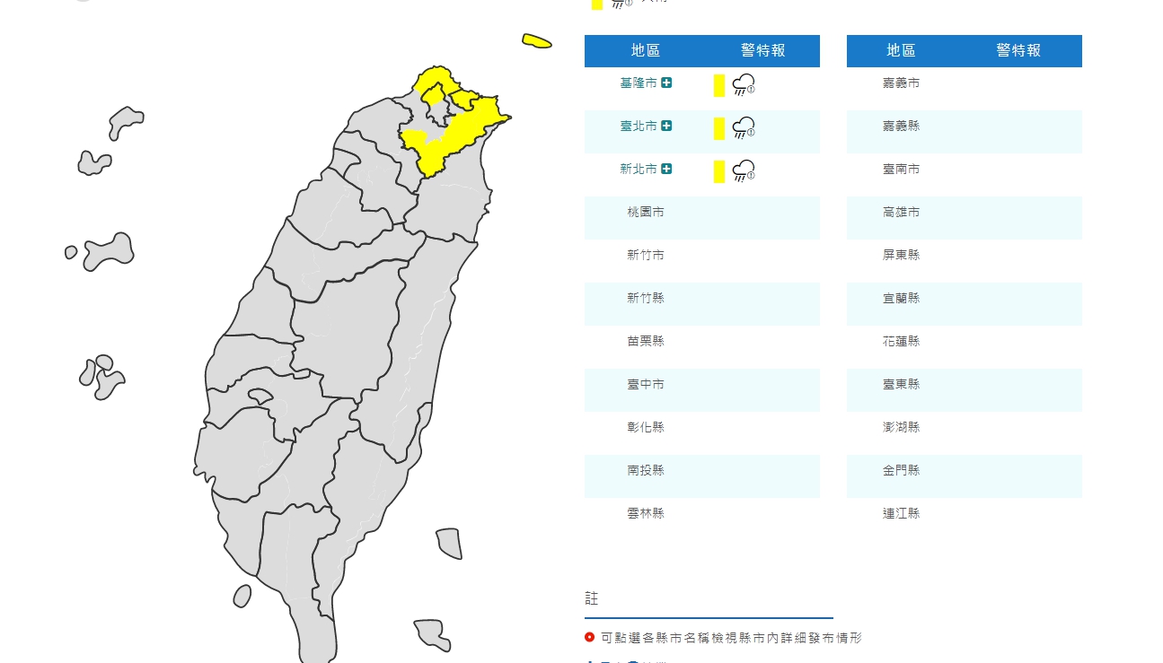 ▼北北基發布大雨特報。(圖/翻攝自中央氣象局)